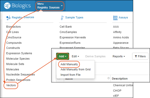 The LabKey Biologics registry can capture Vectors, Constructs, Cell Lines, Expression Systems, and their relationships. To add these entities to the registry, use the creation wizard for the desired type. Creation in bulk via file import is also available.