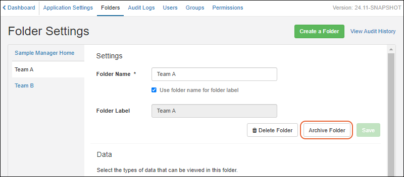 Folders that are no longer in use can be archived to hide them from view. SM-VAL-24.11-E (docs)