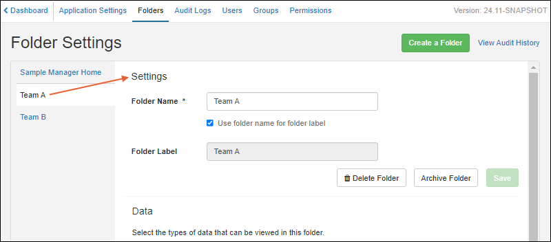 The term "Folder" is now used instead of "Project" to describe a subcontainer or partition of data within the application. All data scoping, user access, and configuration options are unchanged. SM-VAL-24.10-C (docs)