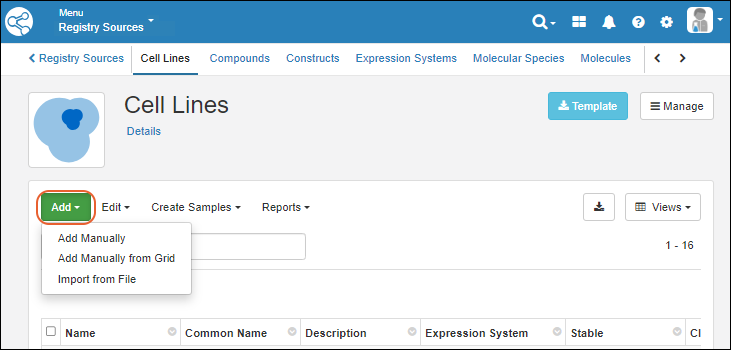 From the main menu, click Cell Lines.