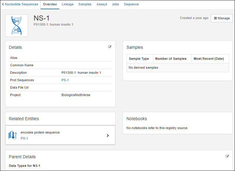 Click the name of the Data Class to edit, such as "NucSequence"
