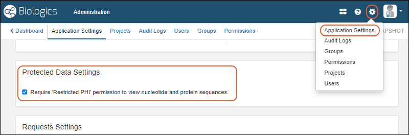 Scroll down to Protected Data Settings, then check the box to Require 'Restricted PHI' permission to view nucleotide and protein sequences.