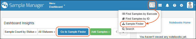 Sample Status is available as a filter for "All Sample Types" in Sample Finder. (docs)