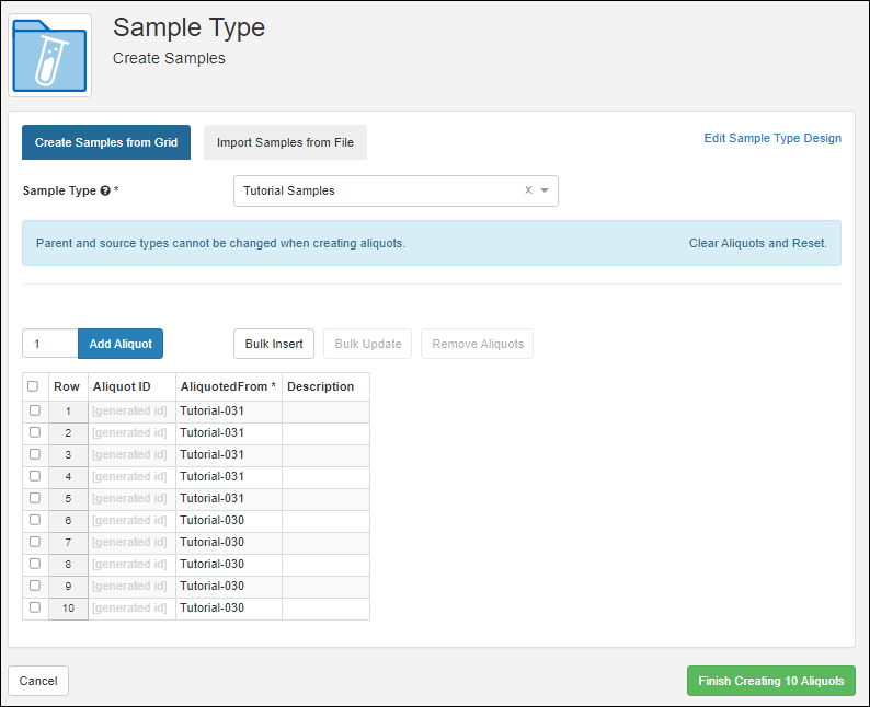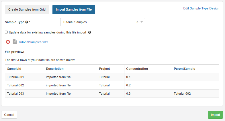 Getting your sample information loaded is the heart of using Sample Manager. Define the structure of the data to describe each "type" of sample in your system. Once the types are defined, the samples can be created within the application or via spreadsheet import.
