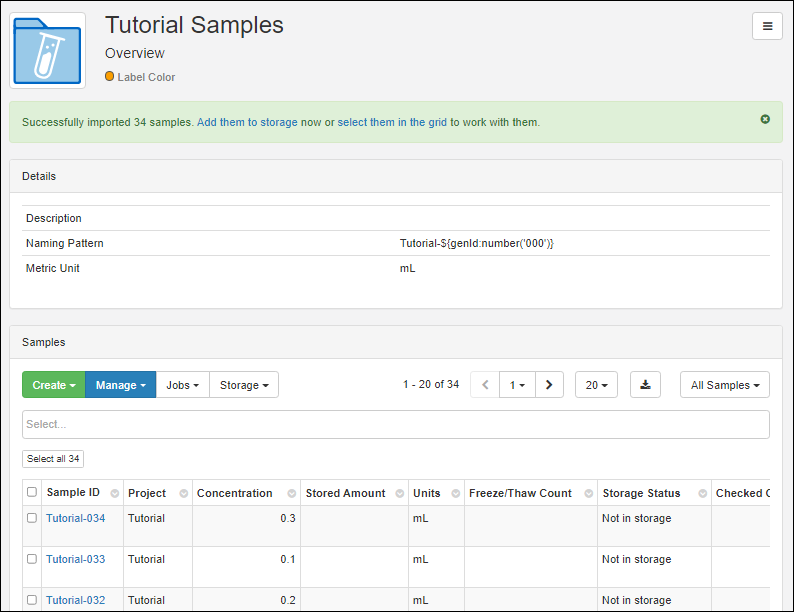 sample tracking. First, complete the tutorial to learn to add sample information, define assays, and create the workflow processes you will follow. When you first create a LabKey Sample Manager project, it will be empty, so these topics are designed to populate each area of the application with tutorial examples.