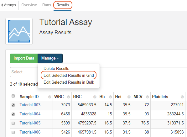 All Assays are shown. Use the dropdown to narrow the listing to just one of the available assays, such as