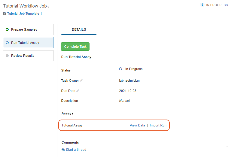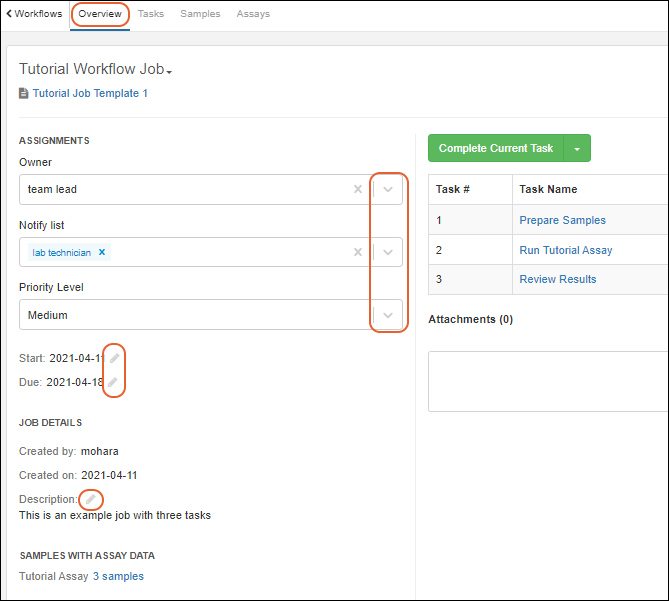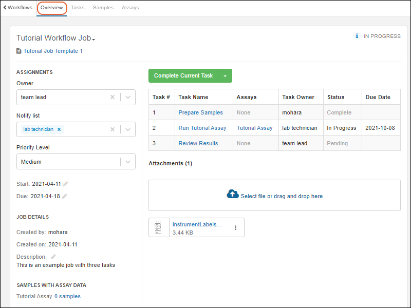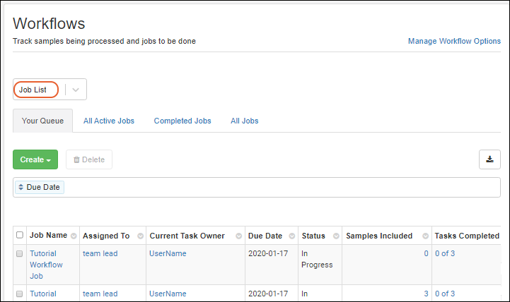 Your laboratory workflow can be managed by creating workflow jobs for the sequences of tasks your team performs. Add your users, set permissions, and organize your jobs and templates following these topics: