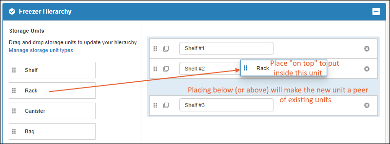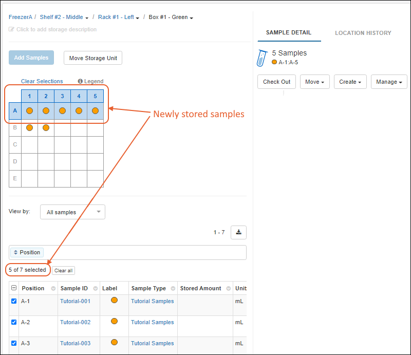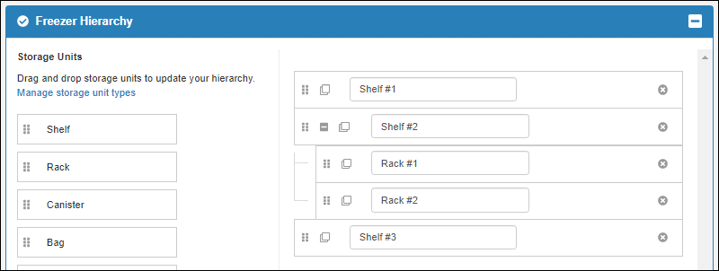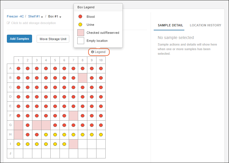 Matching your physical storage to virtual storage locations in the app can make it easy to know where to find the samples you need.