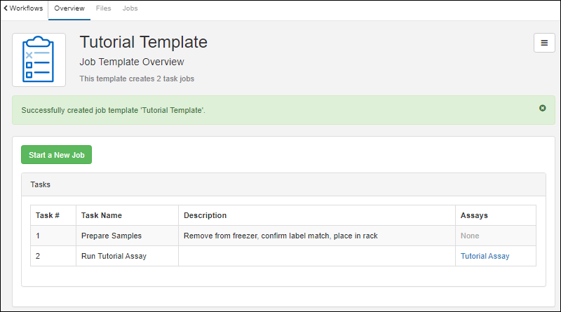 creating a new individual job, with the exception that samples and job details will be added to an individual job separately. No work is assigned within a template. You can also create a template during the process of creating an individual job, as described in