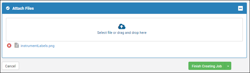 Attach Files section to open the final wizard panel. You can drag and drop to upload any files needed for the job. For example, an SOP document or other instructions related to the job could be included here.