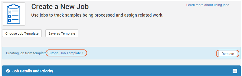 Job Details and Priority panel; complete it as when you are creating a job without a template