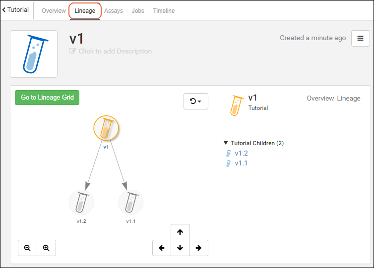 Lineage tab in the upper left to see the lineage of that particular sample. In our demo, DNA samples are derived from PBMC samples, which in turn were derived from blood samples, which in turn have several sources.