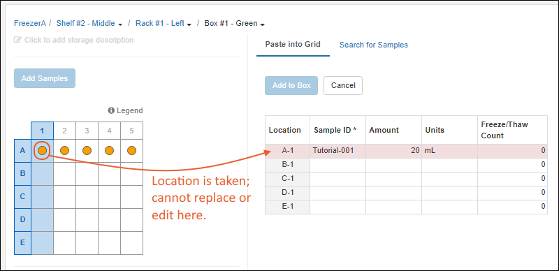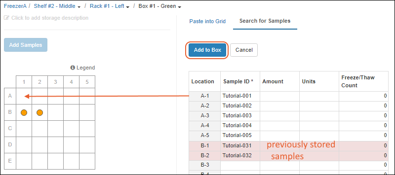 Matching your physical storage to virtual storage locations in the app can make it easy to know where to find the samples you need.