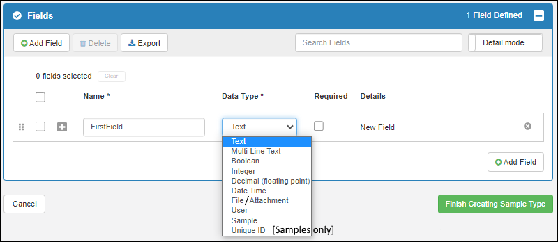 This topic explains how to use the field editor tool to create and customize fields in Sample Types, Sources, and Assay designs.