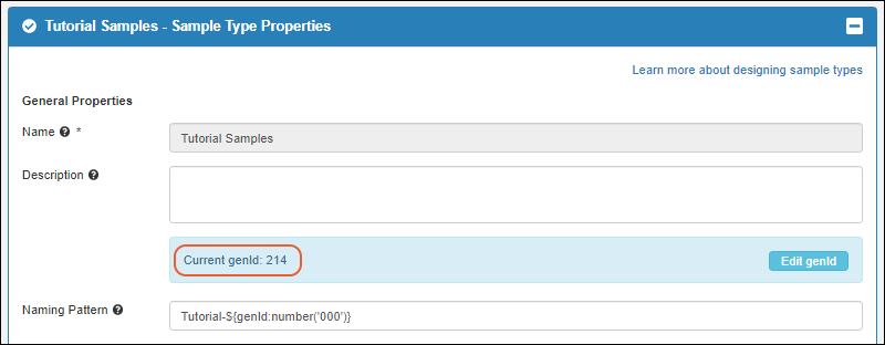 | genId | An incrementing number starting from 1. This counter is specific to the individual Sample Type. | Current Sample Type |
