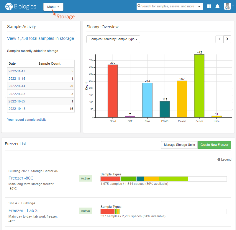 - Track overall available freezer capacity helping you decide where to store new samples.