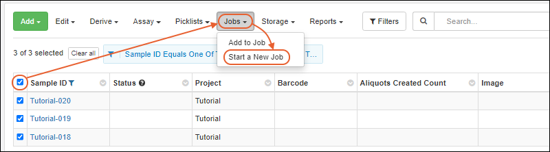 Jobs: all jobs that involve this sample