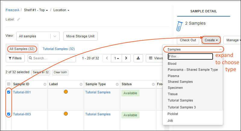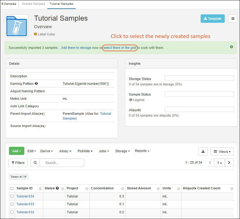 Confirm that "Tutorial Samples" is selected as the Sample Type.