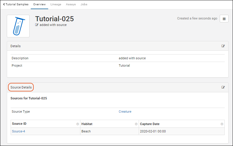Lineage: parentage and source information (Tutorial-018 has both parent and child sample linkages provided in our example file)