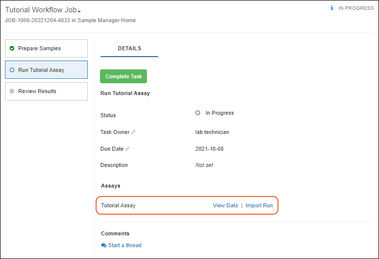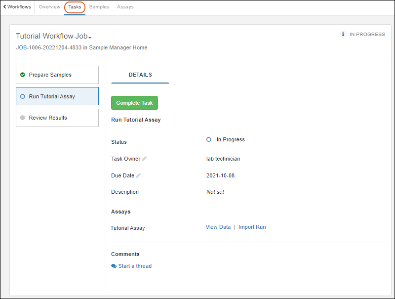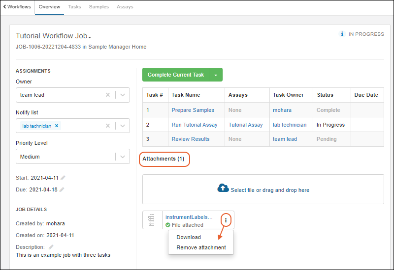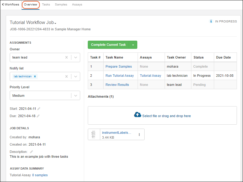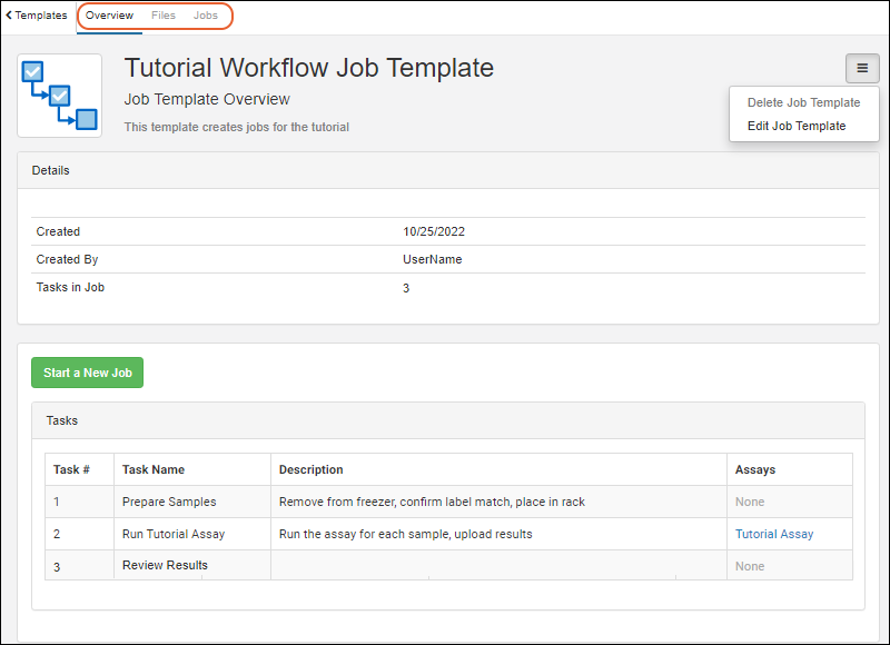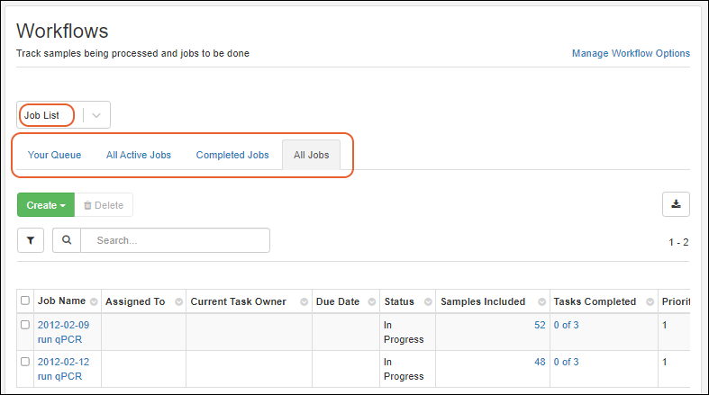 Your laboratory workflow can be managed by creating workflow jobs for the sequences of tasks your team performs. Add your users, set permissions, and organize your jobs and templates following these topics:
