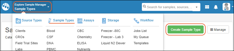 Sample Types on the main header menu, then selecting