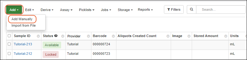 Open the grid method for creating new Samples from the desired Sample Type by selecting