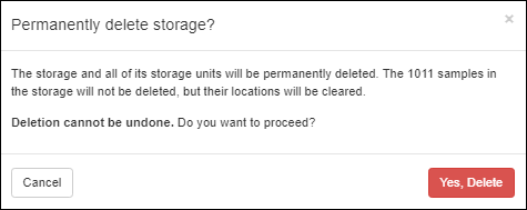 - If any samples are stored in it, you will see a count of how many are stored. The samples themselves (the sample data) will not be deleted if you proceed, but all of the location information for those samples will be cleared.
