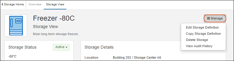 - A button to Go to Storage View is displayed. Click to open this unit on the Storage View tab.