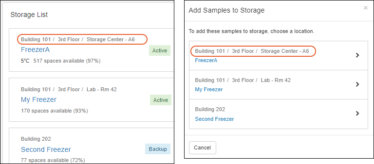 Unlike any location information you might place in the description field, these locations will be shown on the storage dashboard and in the selection popups when deciding where to store or move samples.