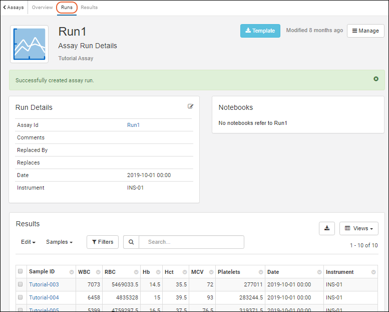 - Assay Id: "Run1"