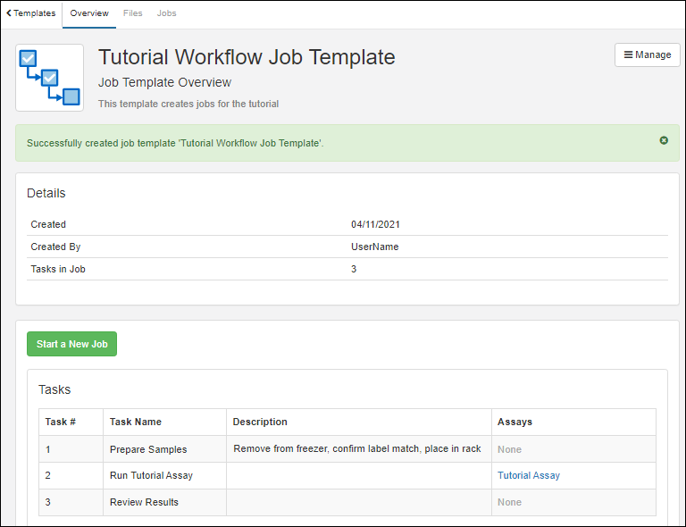 creating a new individual job, with the exception that samples and job details will be added to an individual job separately. No work is assigned within a template. You can also create a template during the process of creating an individual job, as described in