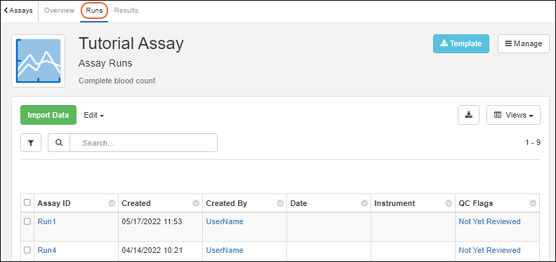 This topic describes how to work with assay data runs and results within the Sample Manager application.