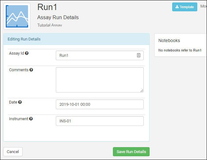 Run Details panel to open them for editing. You will see an entry panel you can use to make changes.