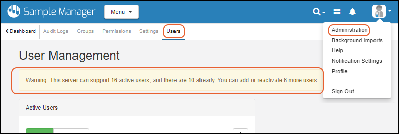 When the number of active users approaches the application limit, administrators will see a warning message on the