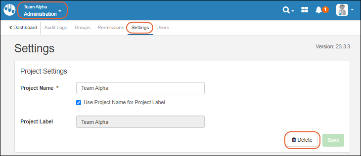 When a project is deleted, all data contained in it will also be deleted. The administrator will see a warning detailing the project's contents and need to confirm to proceed.