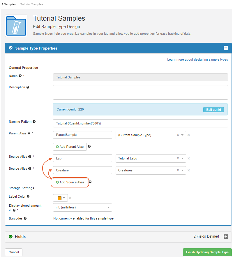 - Click Finish Updating Sample Type.