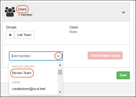 Add member dropdown to add members. You can add individual users, or other groups, to a group. Each time you add a new member, you'll see