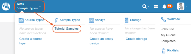 The "Tutorial Samples" Sample Type is now available on the main menu. Click to open it.