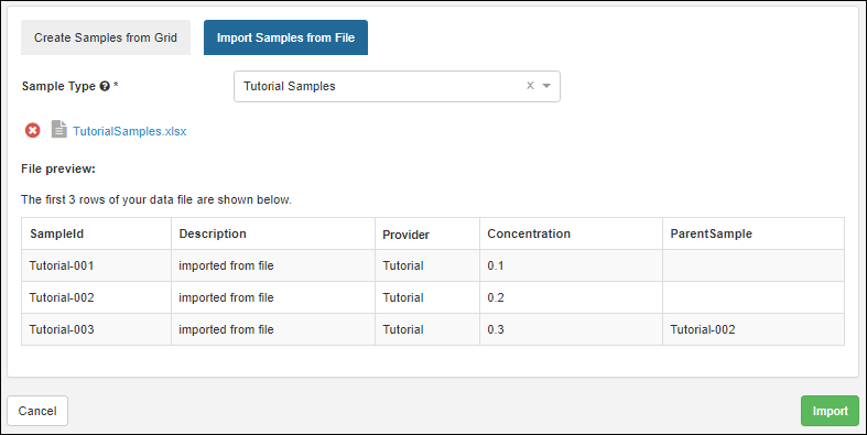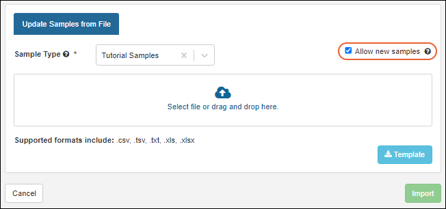 You'll be on the Import Samples from File tab.