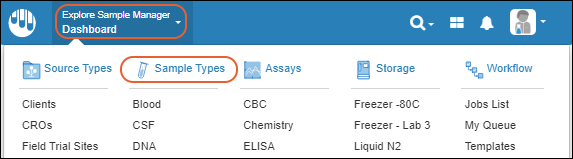Create the first Sample Type in the system by clicking the linked word here in the empty Dashboard Insights panel or by selecting Create a sample type from the main menu under Sample Types.Once one or more Sample Types have been created on your server, you will click the Sample Types heading from the main menu, then click Create Sample Type.