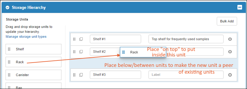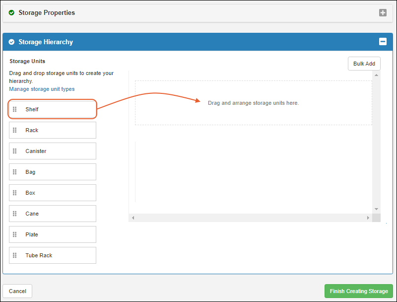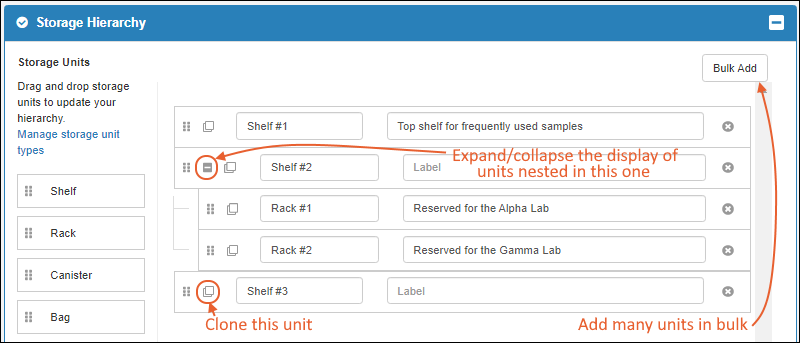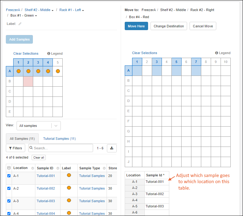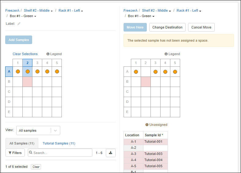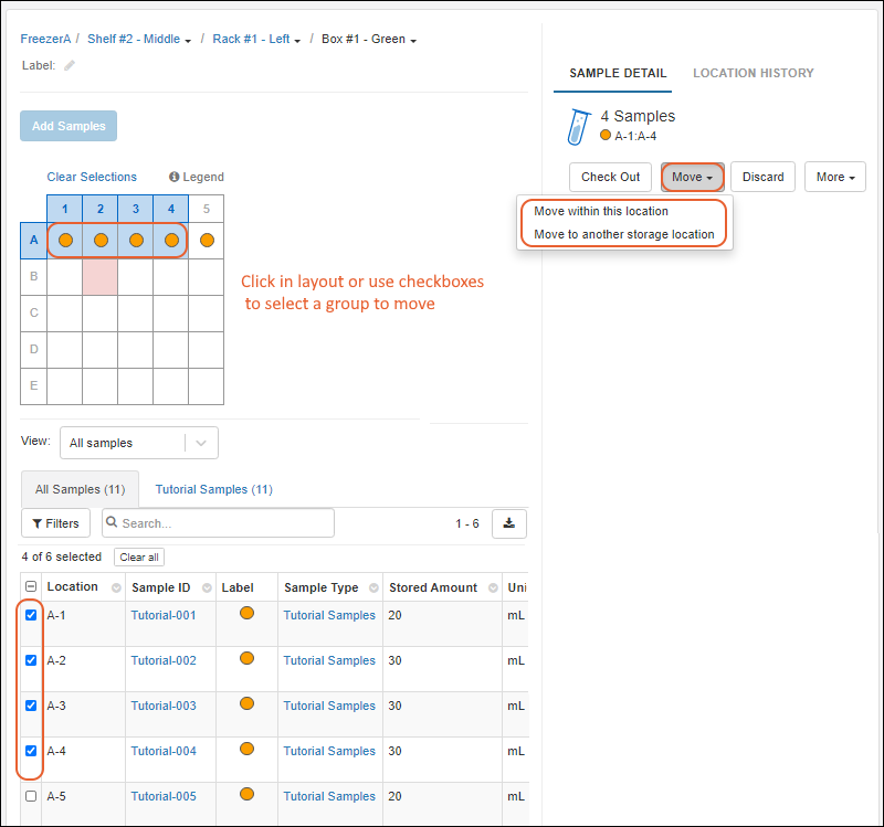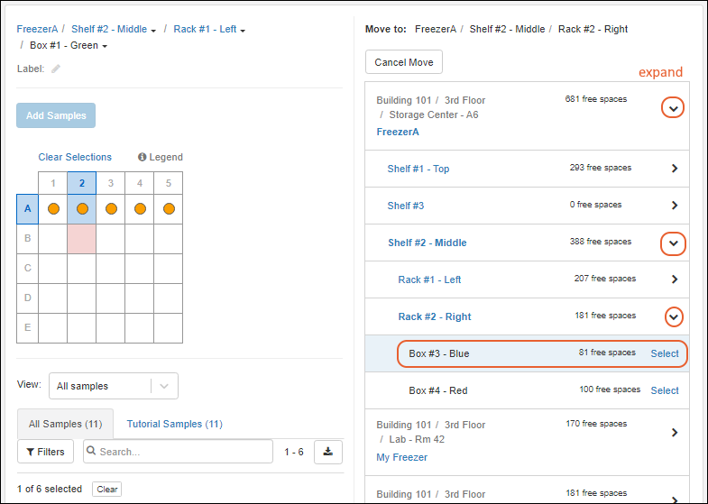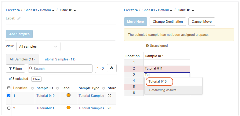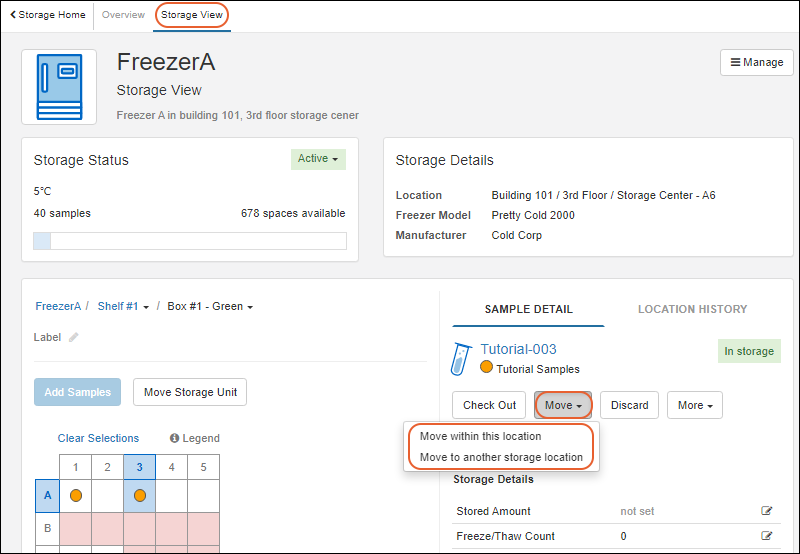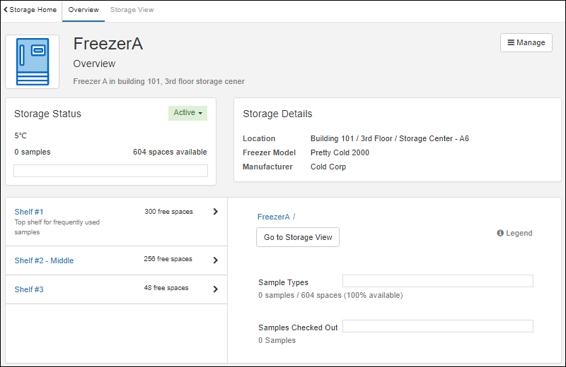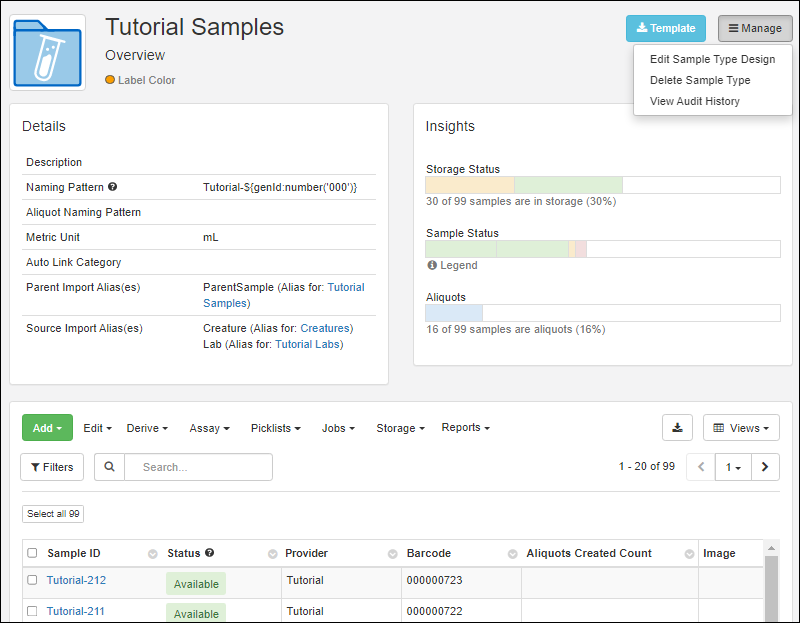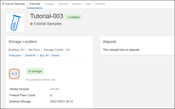 Use storage management tools to track locations of samples in freezers and other storage. (Learn more in the documentation.)
