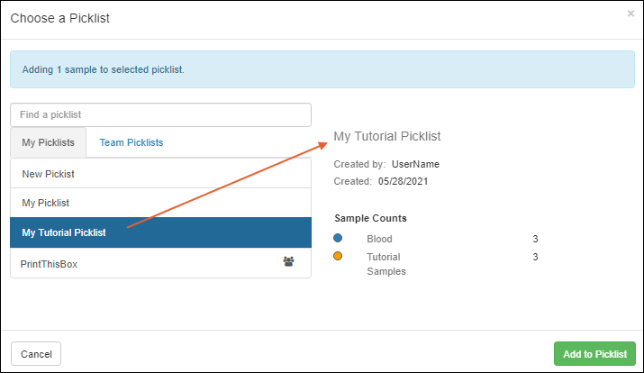 Confirm that "Tutorial Samples" is selected as the Sample Type.
