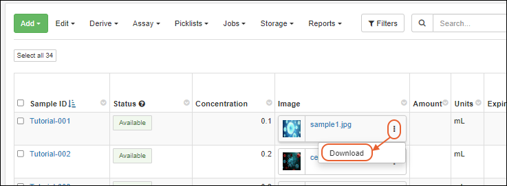 A small thumbnail and the filename will be shown in the details panel and in the column of sample grids. Click the thumbnail or filename to open the image in a larger window.