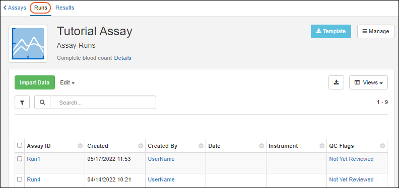 This topic describes how to work with assay data runs and results within the Sample Manager application.