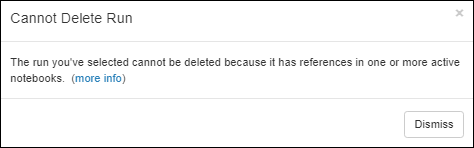 Note that a run cannot be deleted if it is referenced in an