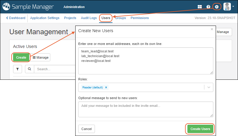 describe and import assay data, it's time to add some other users so we can understand how the workflow management tools work in Sample Manager. To do this, we will add a few fake users and assign them different roles. You must have administrator permissions yourself to complete the tasks in this step.