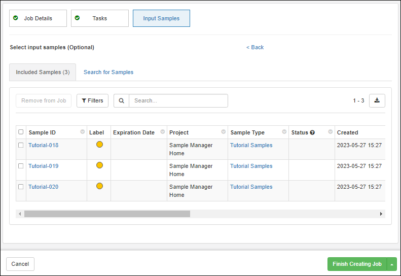Create a Job with Selected Samples