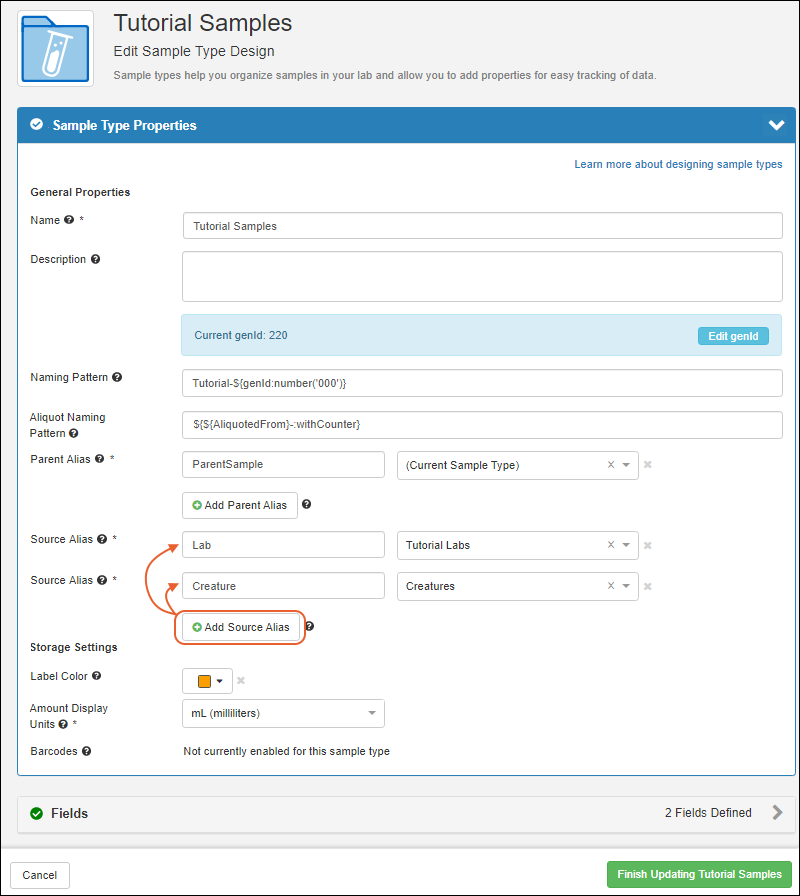 Click Finish Creating Sample Type.