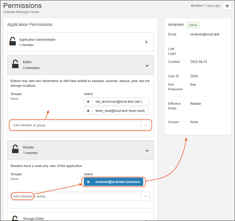 Select the desired Role(s) for the users you are creating. For the tutorial, you can use only the default Reader, or add Storage Editor if you want to experiment with freezer storage actions.