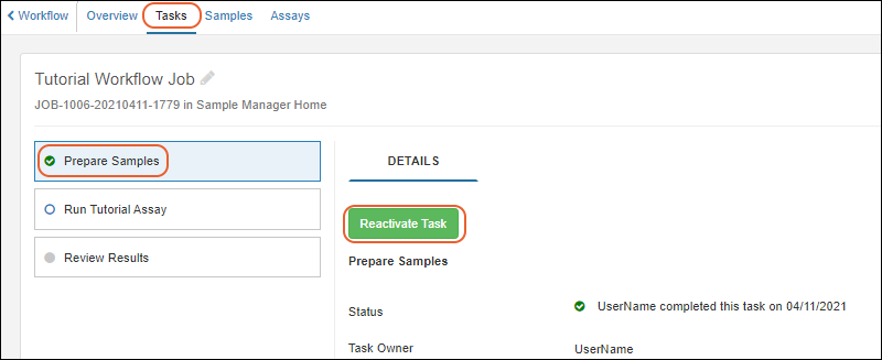 Users of the Sample Manager application without administrative permissions but with the "Editor" role will perform the following tasks. Portions of the tutorial that are common user tasks are: